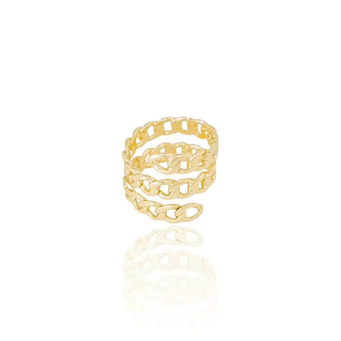 Anel Ajustável Elos Corrente Tamanho M Banho Dourado