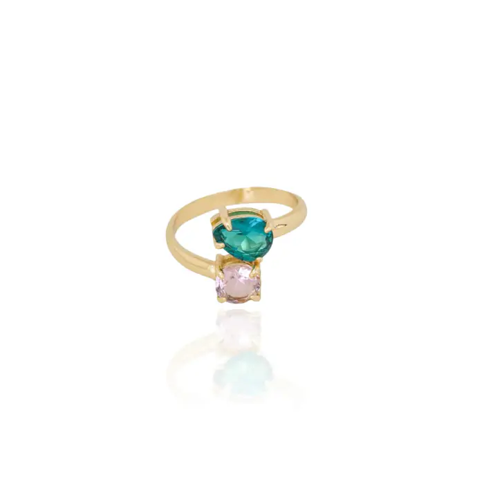 Anel Ajustável Gota Turmalina Ponto de Luz Rosa Tamanho M Banho Dourado