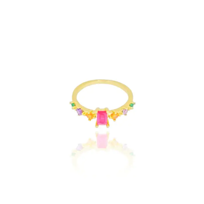 Anel Baguete Colorido Tamanho 17 Banho Dourado