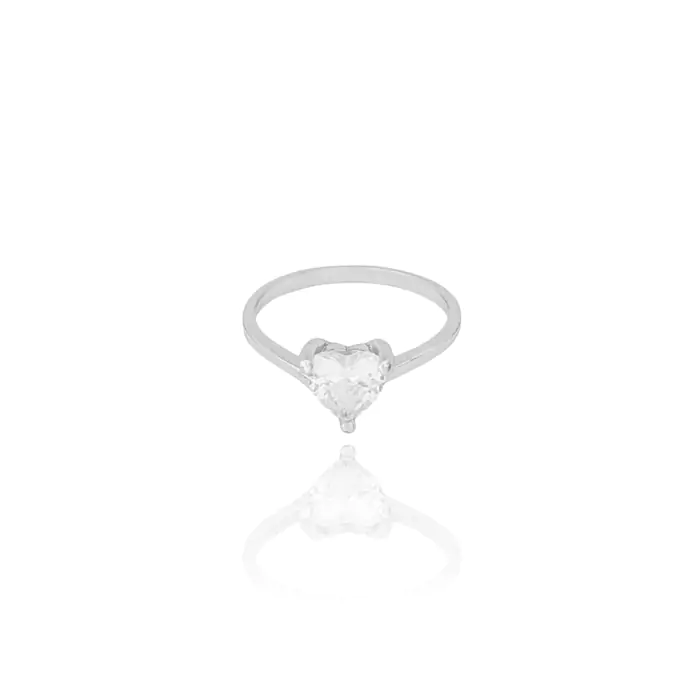 Anel Coração Cristal Tamanho 20 Banho Branco