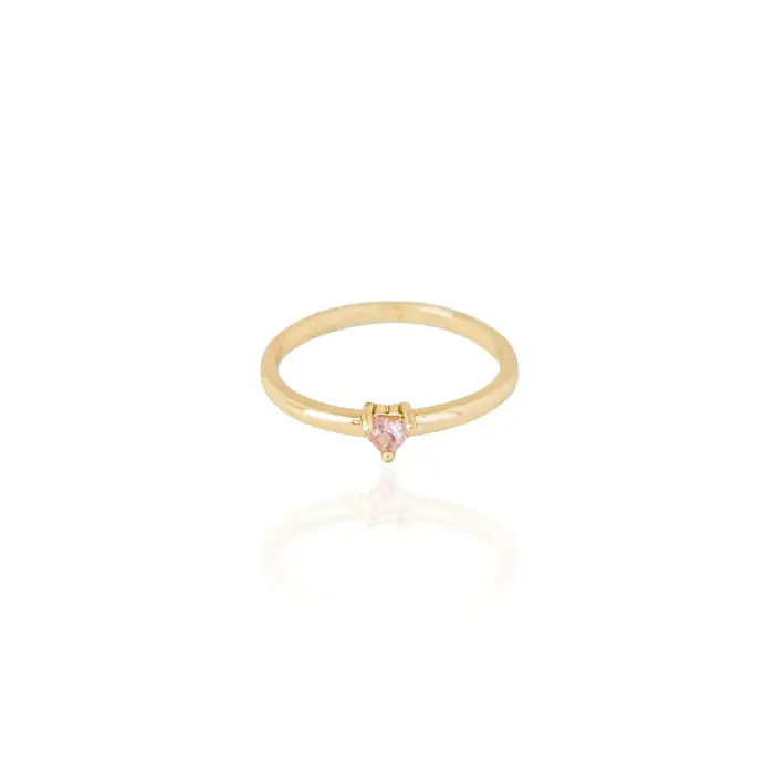 Anel Coração Rosa Tamanho 16 Banho Dourado