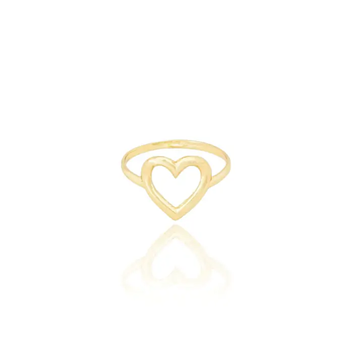 Anel Coração Vazado Liso Tamanho 16 Banho Dourado