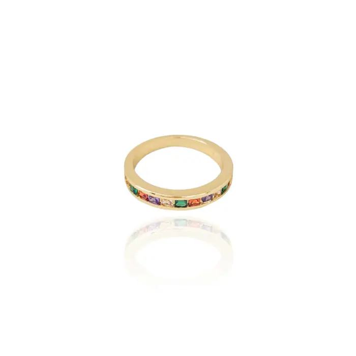 Anel Cravejado Colorido Tamanho 15 Banho Dourado