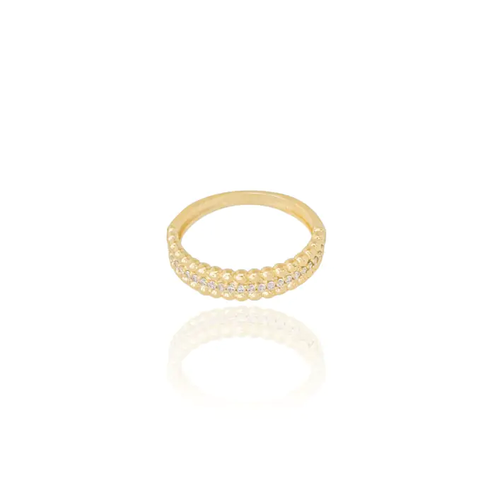 Anel Cravejado Cristal Borda Bolinhas Tamanho 21 Banho Dourado