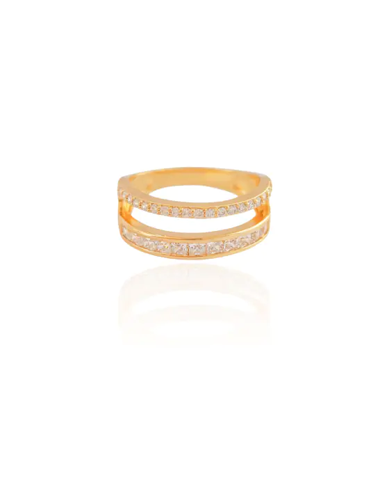 Anel Filetes Carré Zircônias Tamanho 15 Banho Dourado