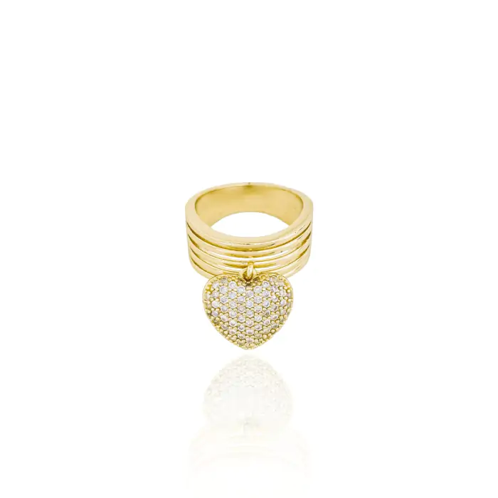 Anel Filetes Coração Cravejado Tamanho 22 Banho Dourado