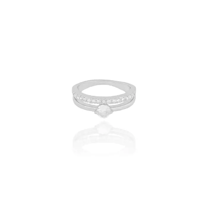 Anel Filetes Ponto de Luz e Cravejado Cristal Tamanho 15 Banho Branco