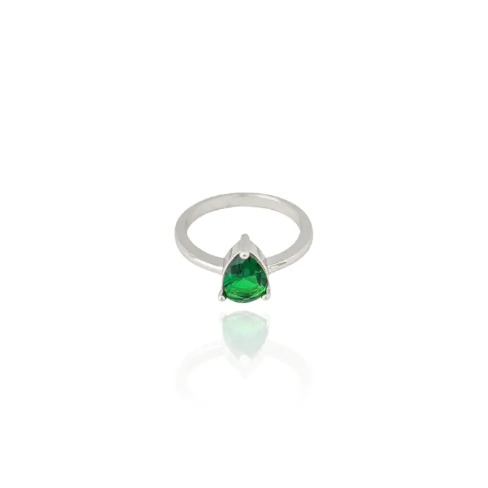 Anel Gota Esmeralda Tamanho 16 Banho Branco