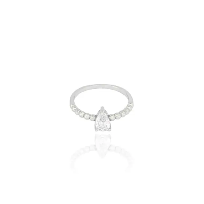 Anel Gota Zircônia Cristal Detalhes Bolinhas Tamanho 15 Banho Branco