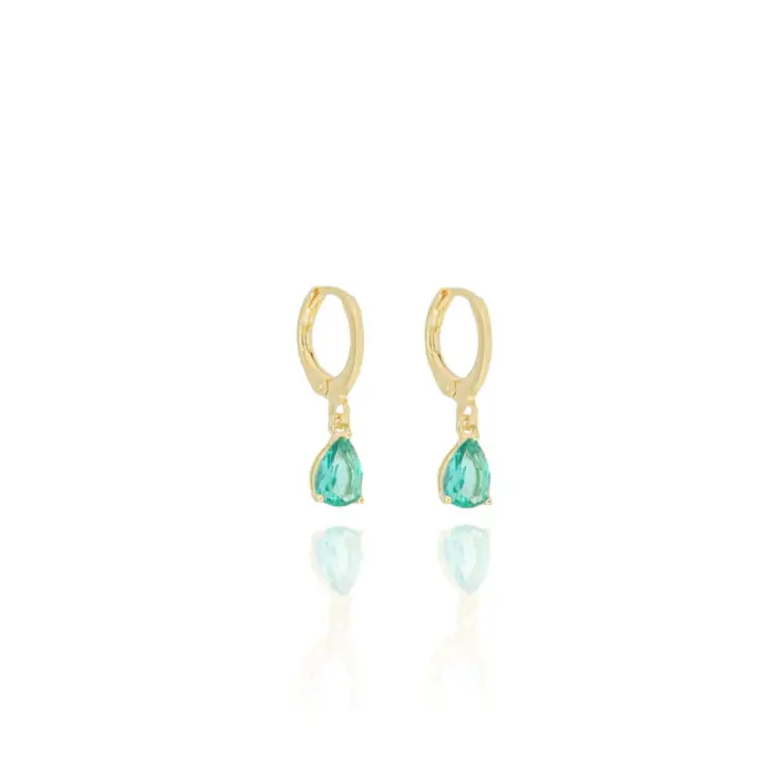 Brinco Argola Lisa Gota Turmalina Banho Dourado