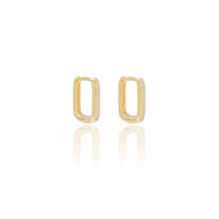 Brinco Argola Retangular Tamanho M Banho Dourado