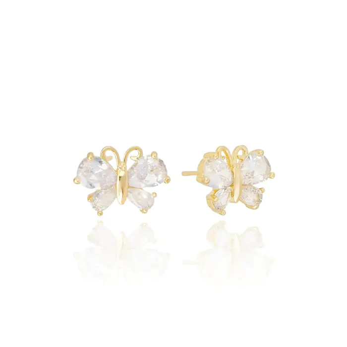 Brinco Borboleta Cristal Banho Dourado