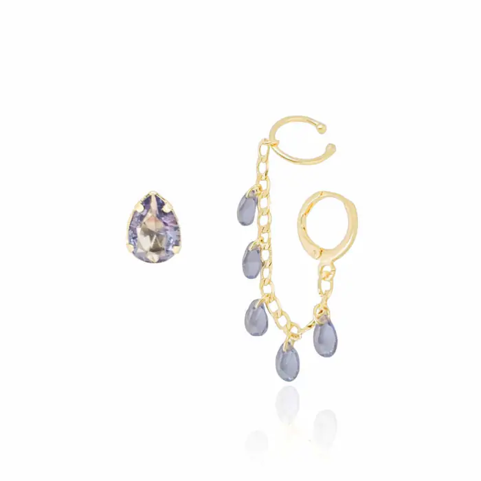Brinco Gota Piercing Argola Unilateral Gotas Ametista Banho Dourado