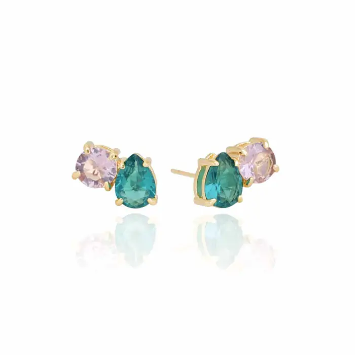 Brinco Gota Turmalina Ponto de Luz Rosa Banho Dourado