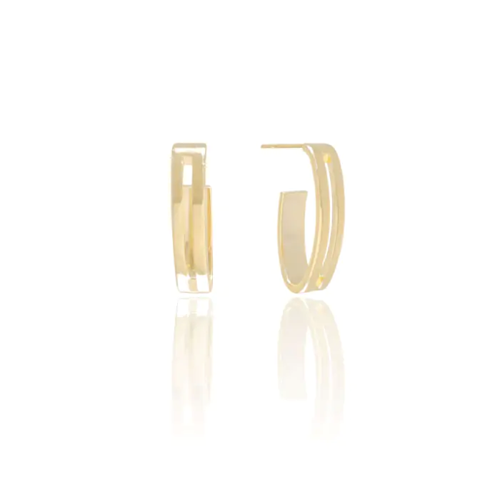 Brinco Meia Argola Filetes Elíptico Banho Dourado