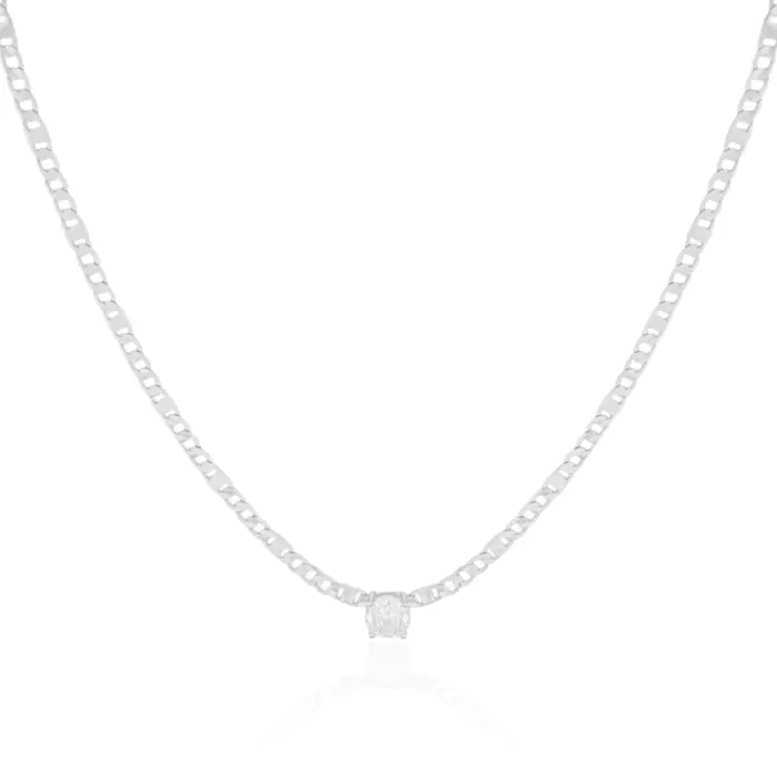 Choker Grumet Piastrine com Ponto de Luz Cristal Banho Branco