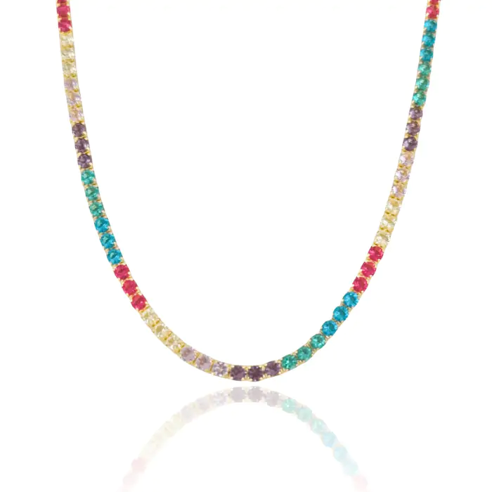 Choker Riviera Zirconias Coloridas Banho Dourado