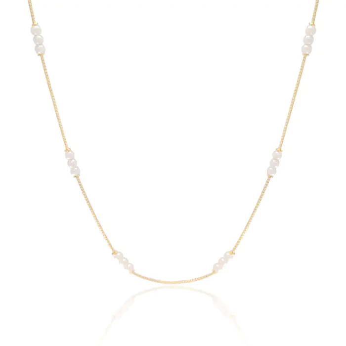 Choker Veneziana Pérolas Banho Dourado