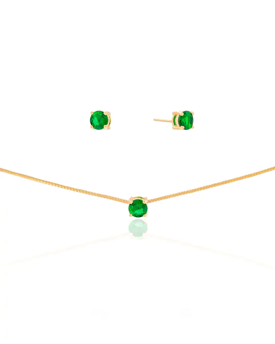 Conjunto Ponto de Luz Esmeralda 5 mm Banho Dourado