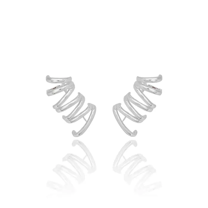 Ear Cuff Duplo 7 Filetes Liso Pressão Banho Branco