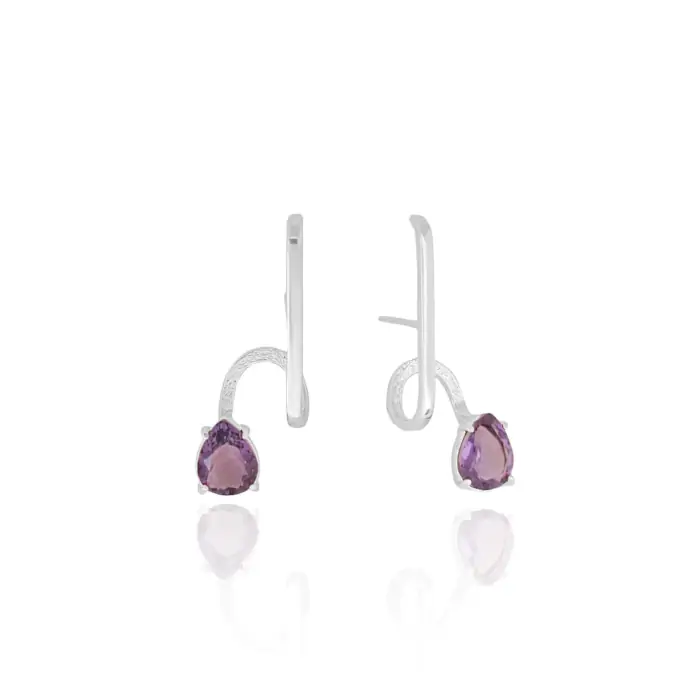Ear Hook Gota Ametsta Filete Banho Branco