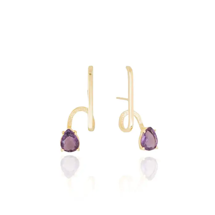 Ear Hook Gota Ametsta Filete Banho Dourado