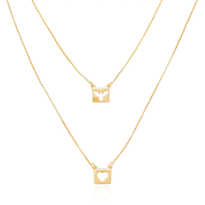 Escapulário Espirito Santo e Coração Vazados Banho Dourado