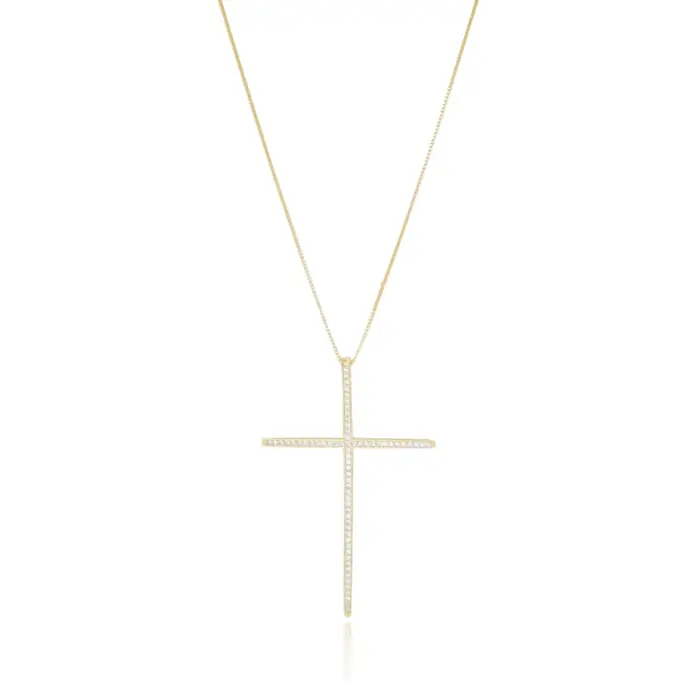 Gargantilha Cruz Zircônia Cristal Cravejada Banho Dourado