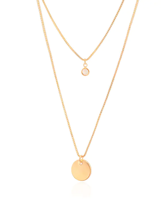 Gargantilha Dupla Redondo e Ponto de Luz Cristal Banho Dourado