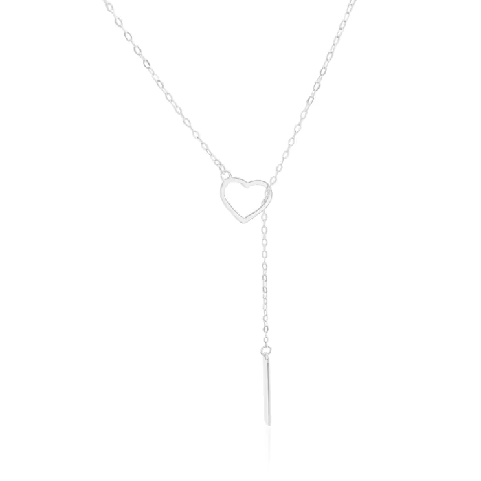 Gargantilha Elos Americanos com Coração e Palito Banho Branco