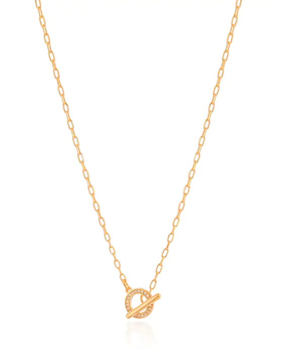 Gargantilha Elos Fecho T Redondo Cravejado Cristal Banho Dourado - 42 cm