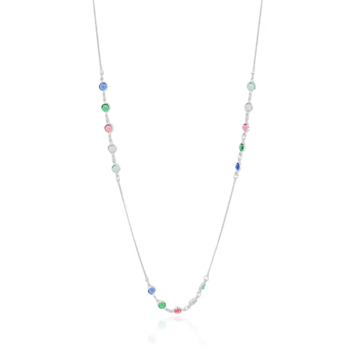 Gargantilha Longa Colorida Pontos de Luz Banho Branco