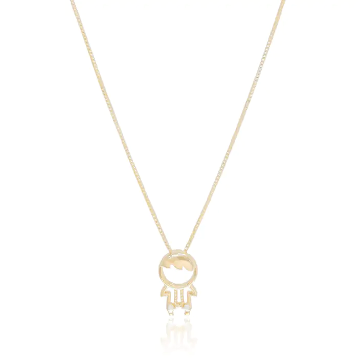 Gargantilha Menino Cravejado Zircônia Banho Dourado