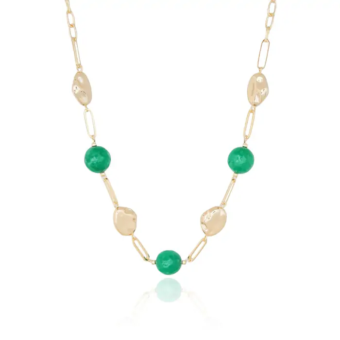 Gargantilha Pedras Verdes Detalhes Elos Banho Dourado