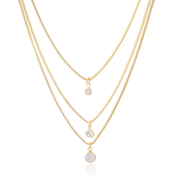 Gargantilha Tripla Veneziana Pontos de Luz Banho Dourado