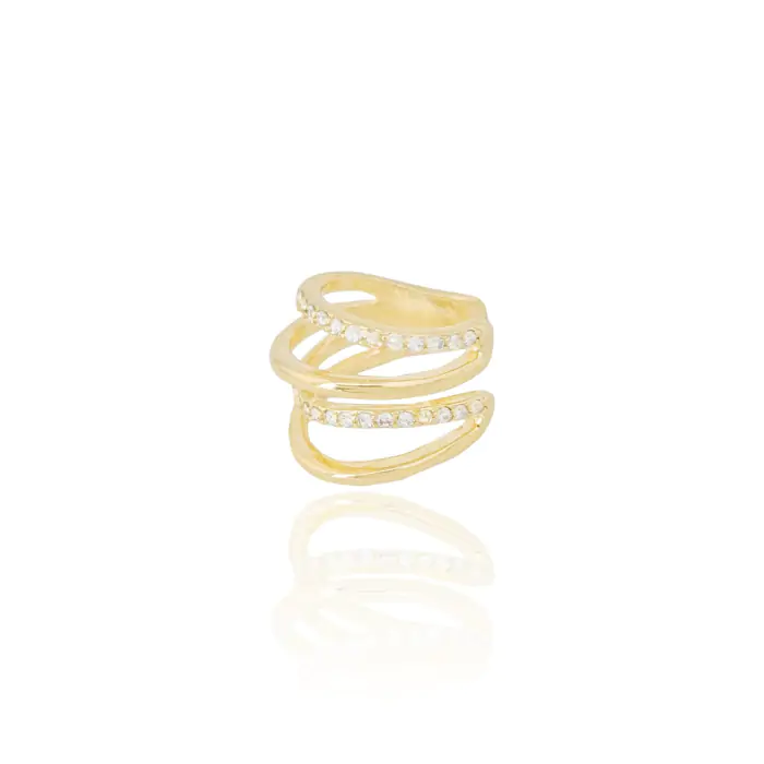 Piercing Quatro Filetes Cravejados Cristal e Lisos Banho Dourado