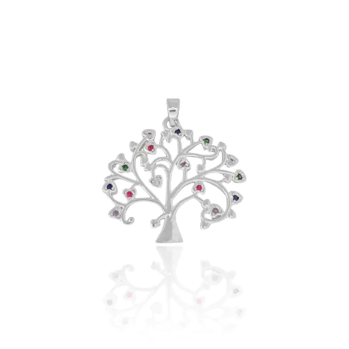 Pingente Arvore da Vida Vazada Colorida Banho Branco