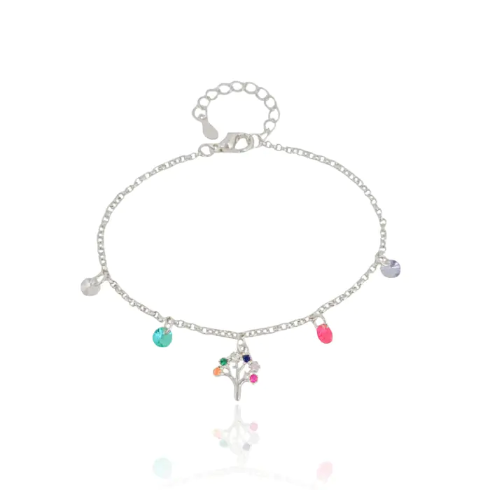 Pulseira Arvore da Vida Pontos de Luz Coloridos Banho Branco